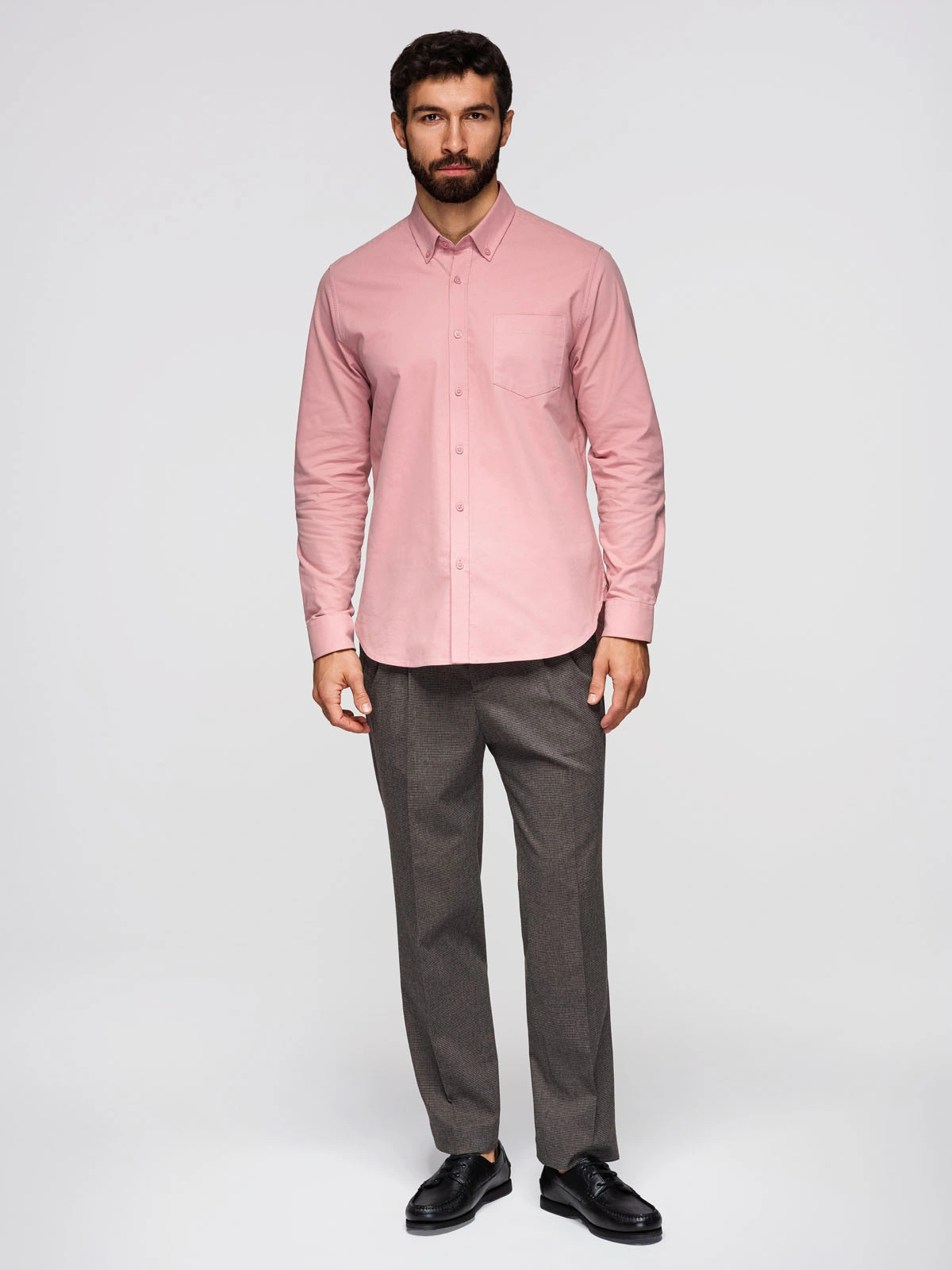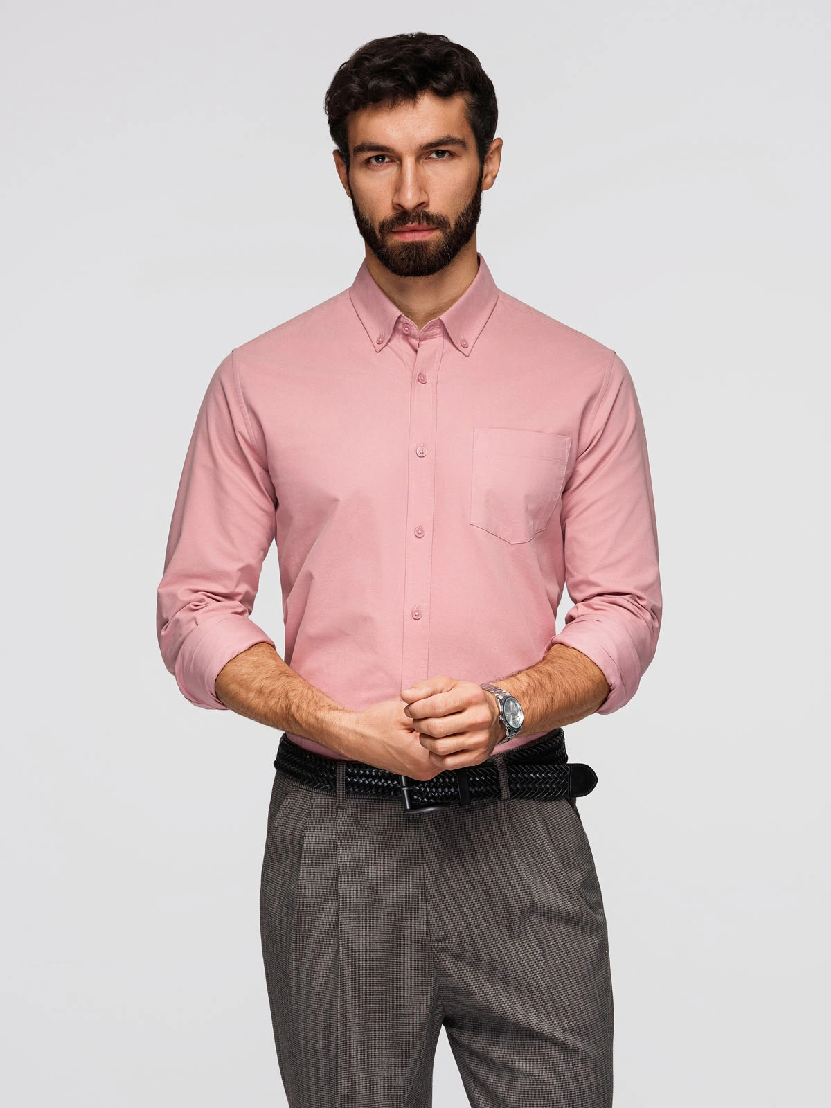 Męska koszula bawełniana REGULAR FIT z kieszenią - różowa V3 K700
