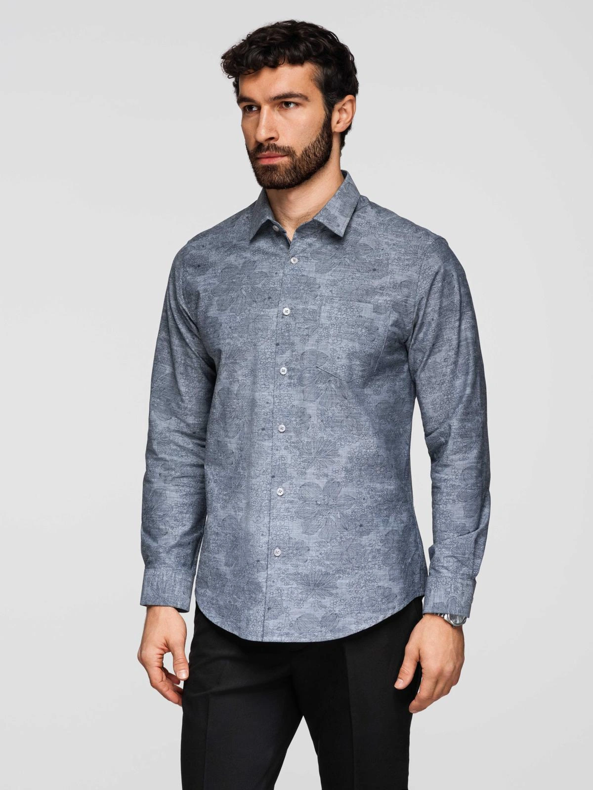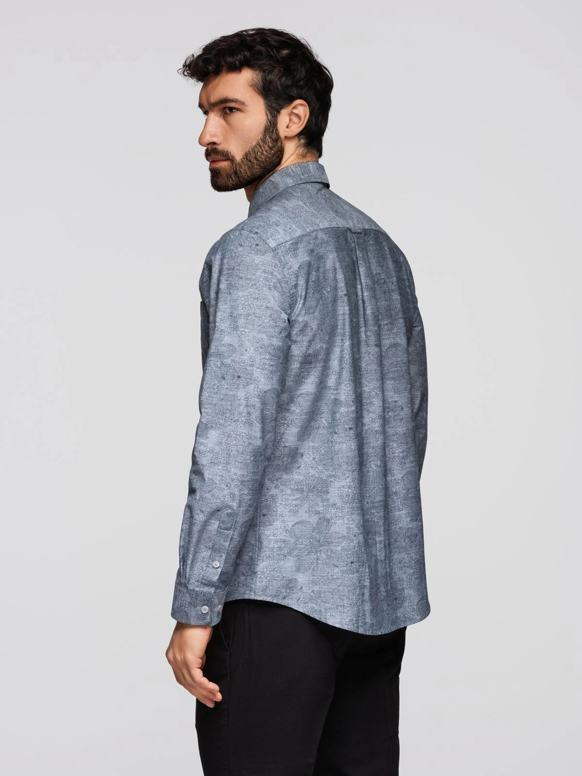 Klasyczna flanelowa męska koszula bawełniana w kwiaty - szara V3 K701