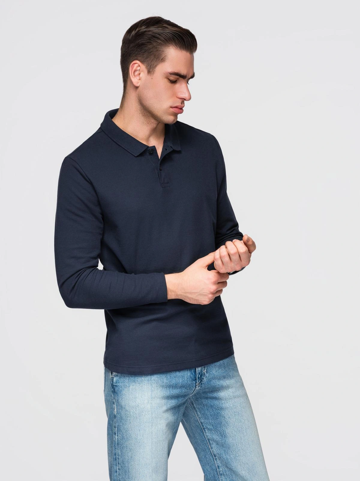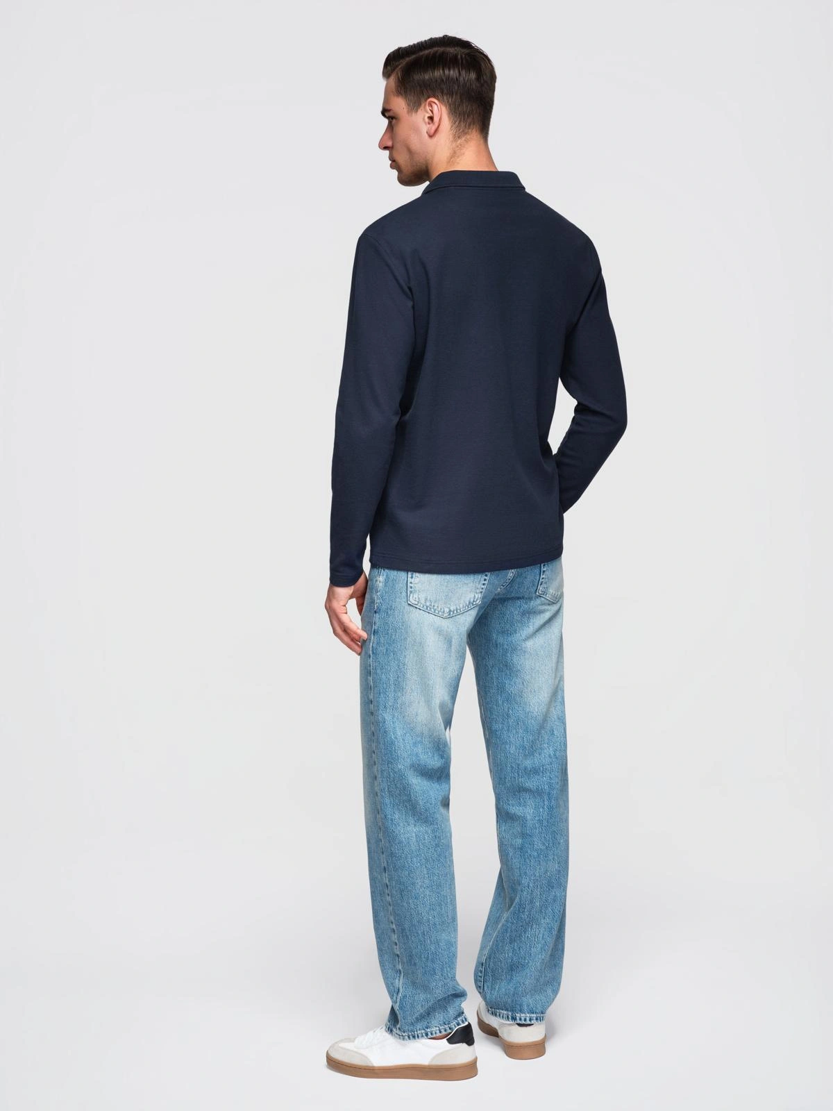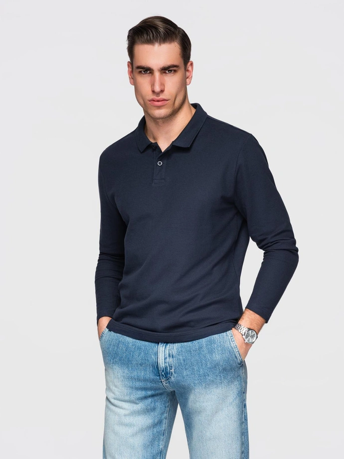 Męski longsleeve BASIC z kołnierzykiem polo – granatowy V3 OM-POBL-0162