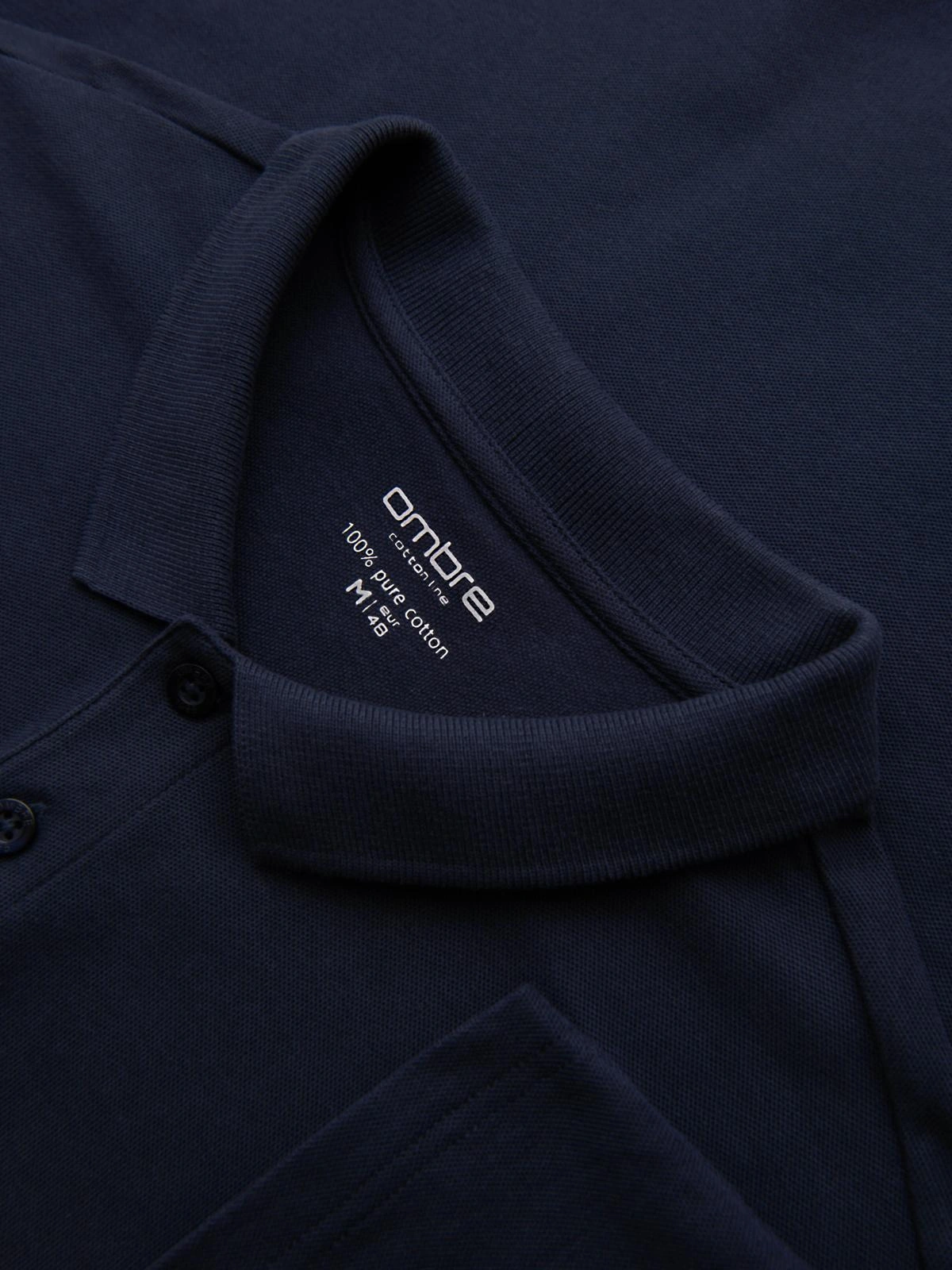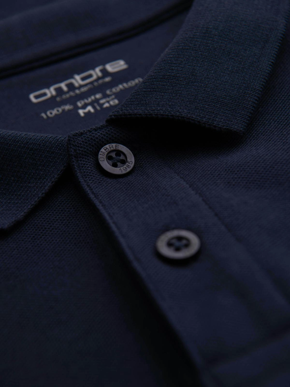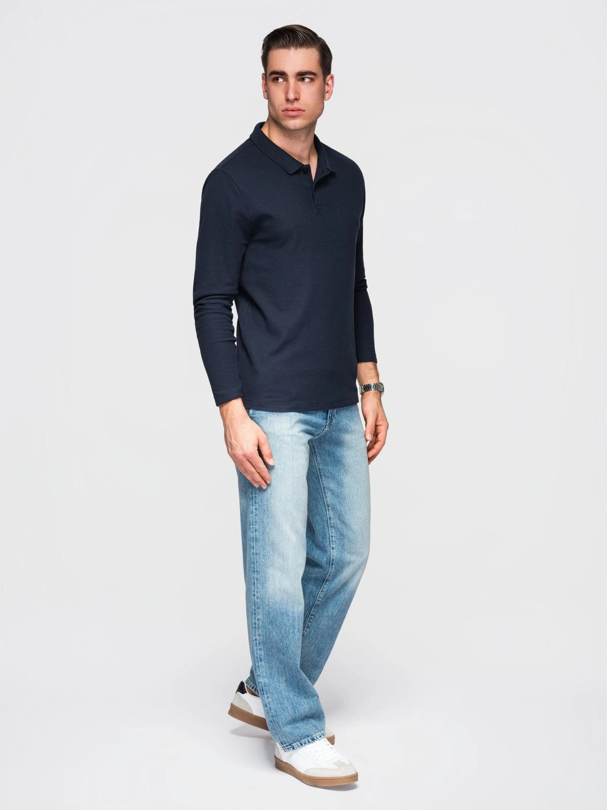 Męski longsleeve BASIC z kołnierzykiem polo – granatowy V3 OM-POBL-0162