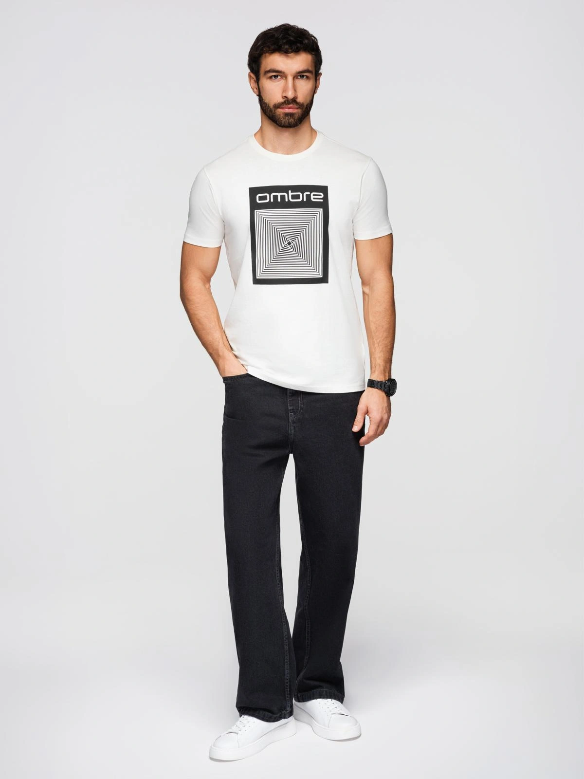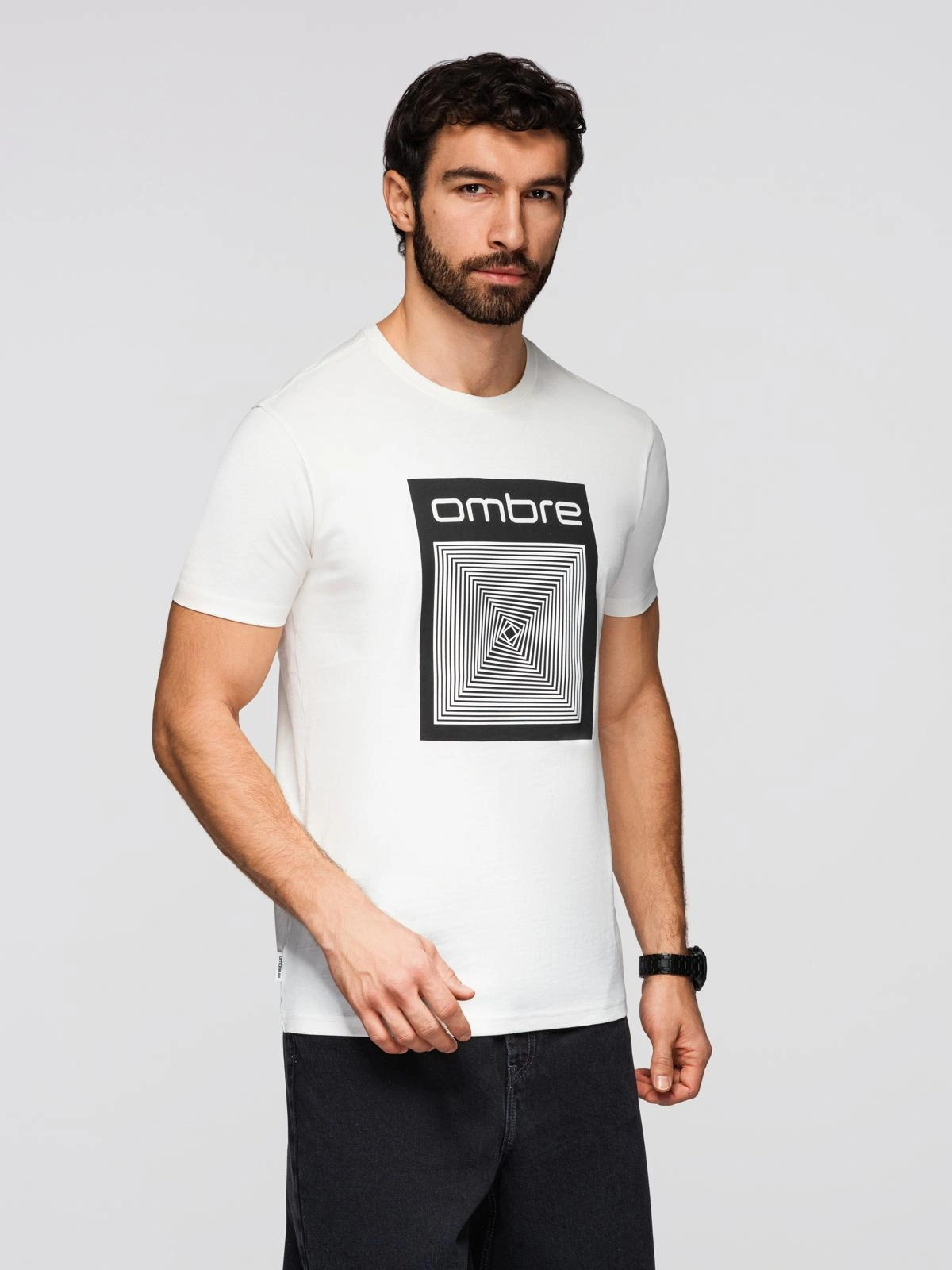 Koszulka męska bawełniana z geometrycznym nadrukiem - biała V2 OM-TSPT-0260