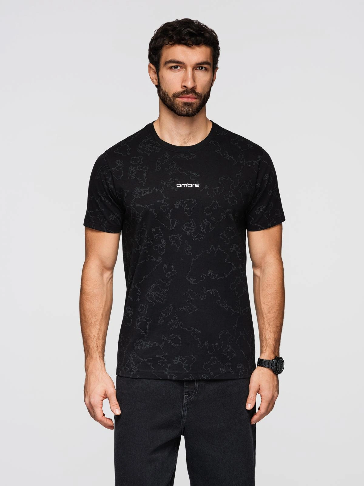 Koszulka męska bawełniana z nadrukiem na całej powierzchni i "ombre" na klatce piersiowej - czarna V1 OM-TSFP-0263