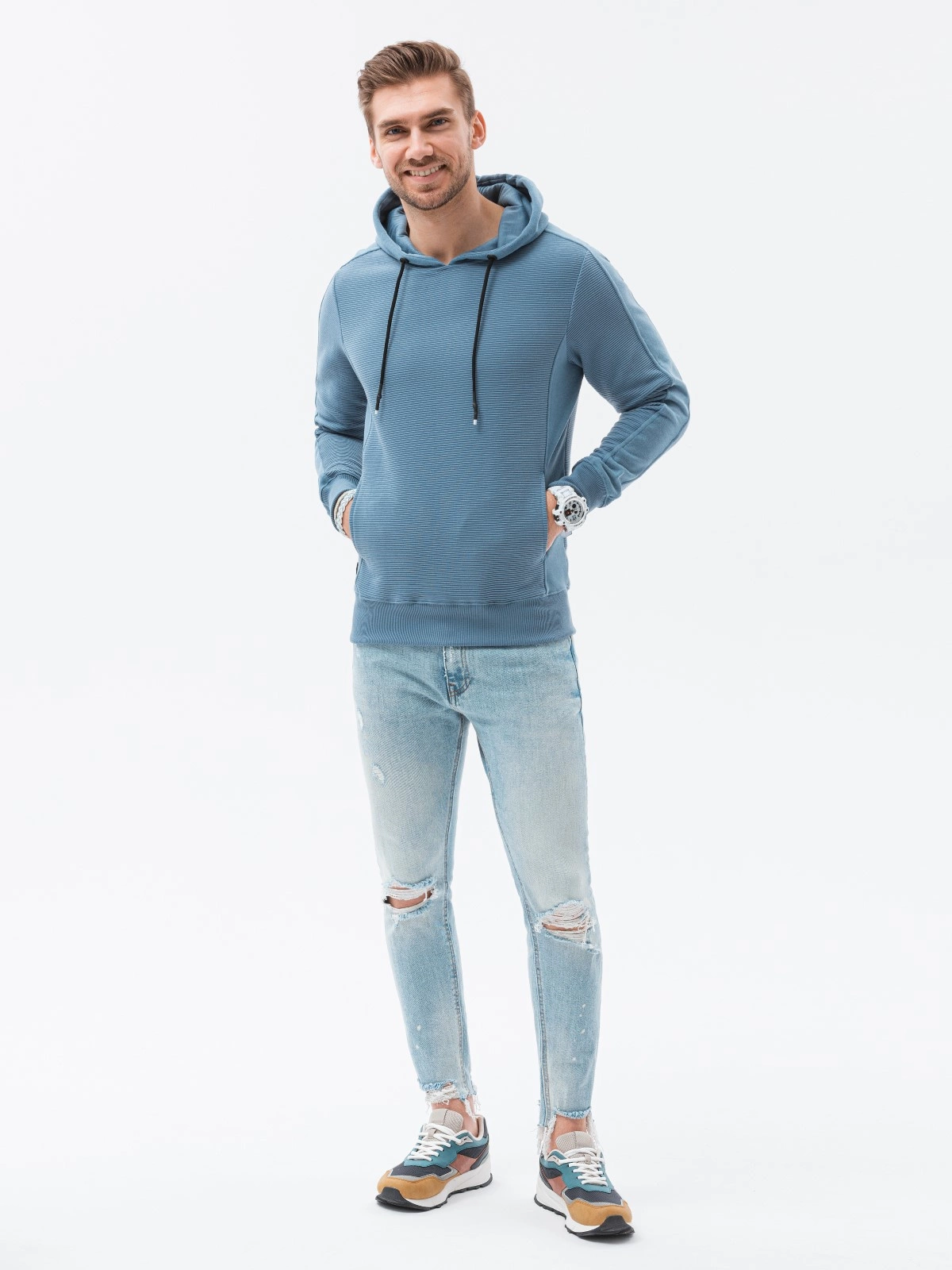 Opinie o Bluza męska z kapturem - niebieska B1155