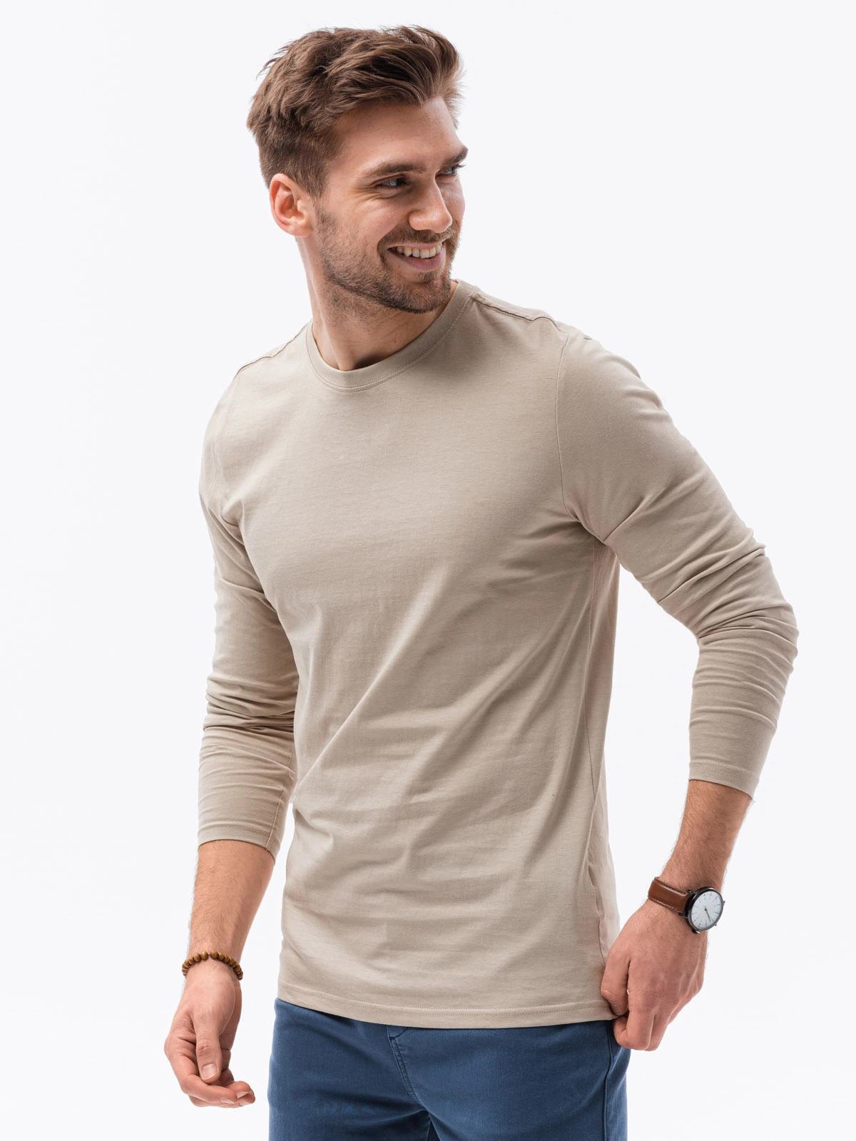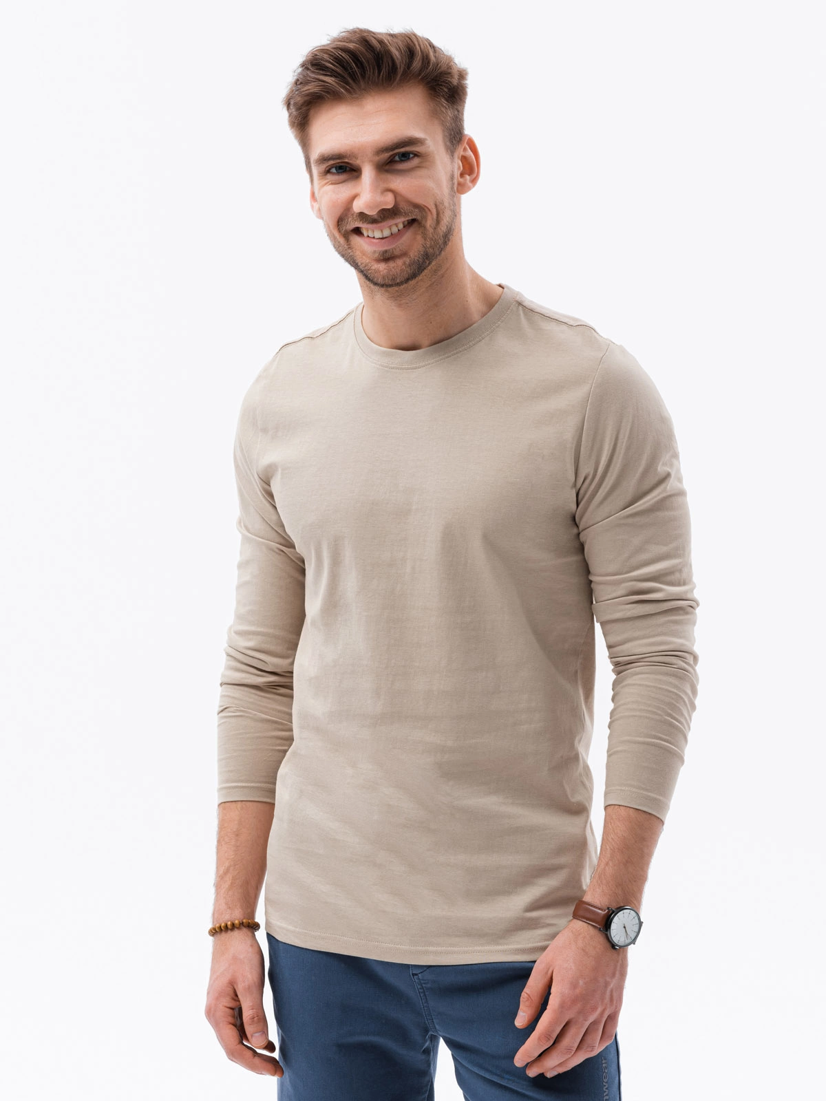 Longsleeve męski bez nadruku - beżowy V8 L138