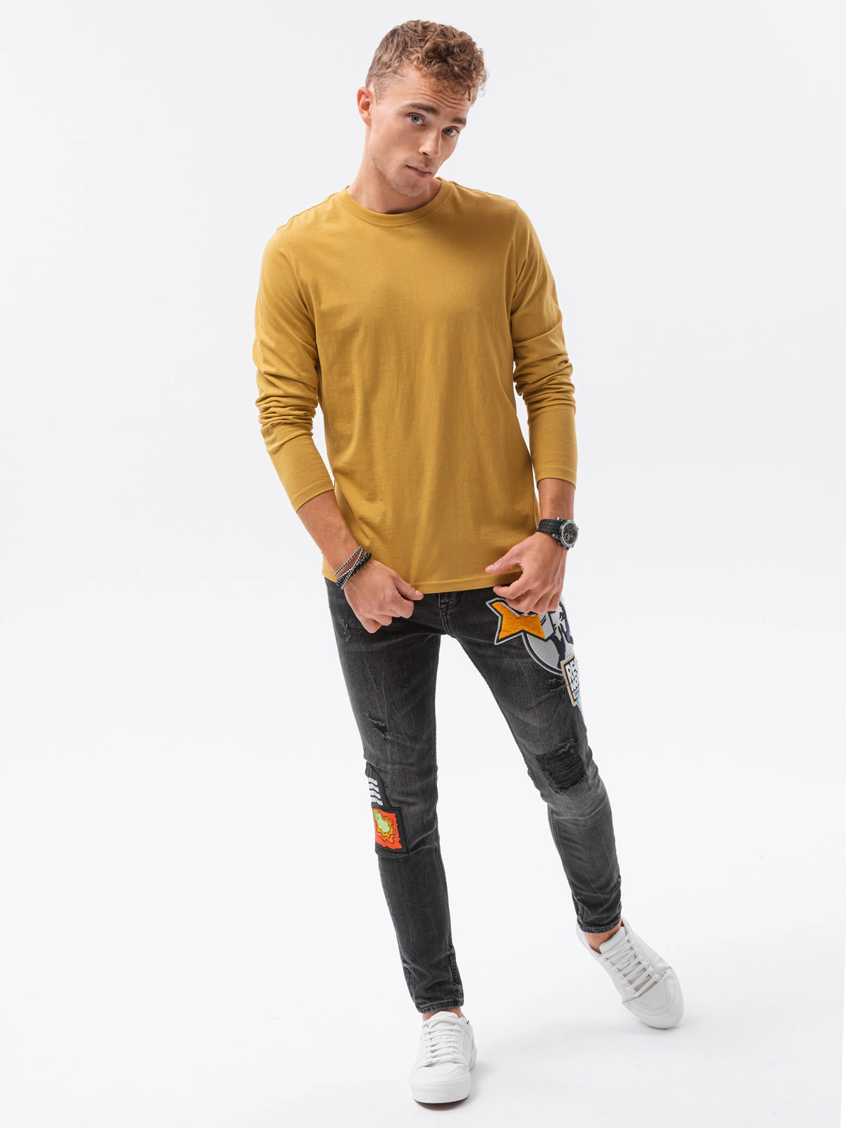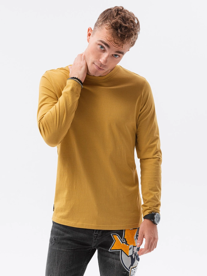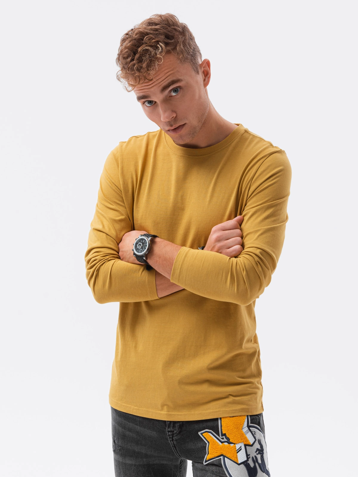 Longsleeve męski bez nadruku - musztardowy V10 L138