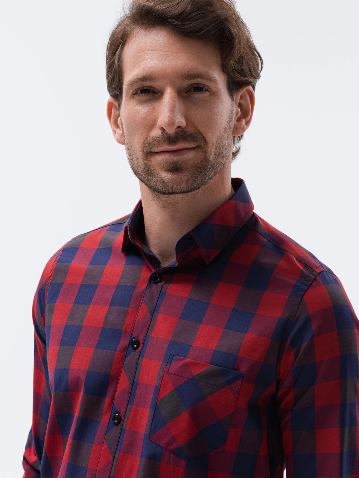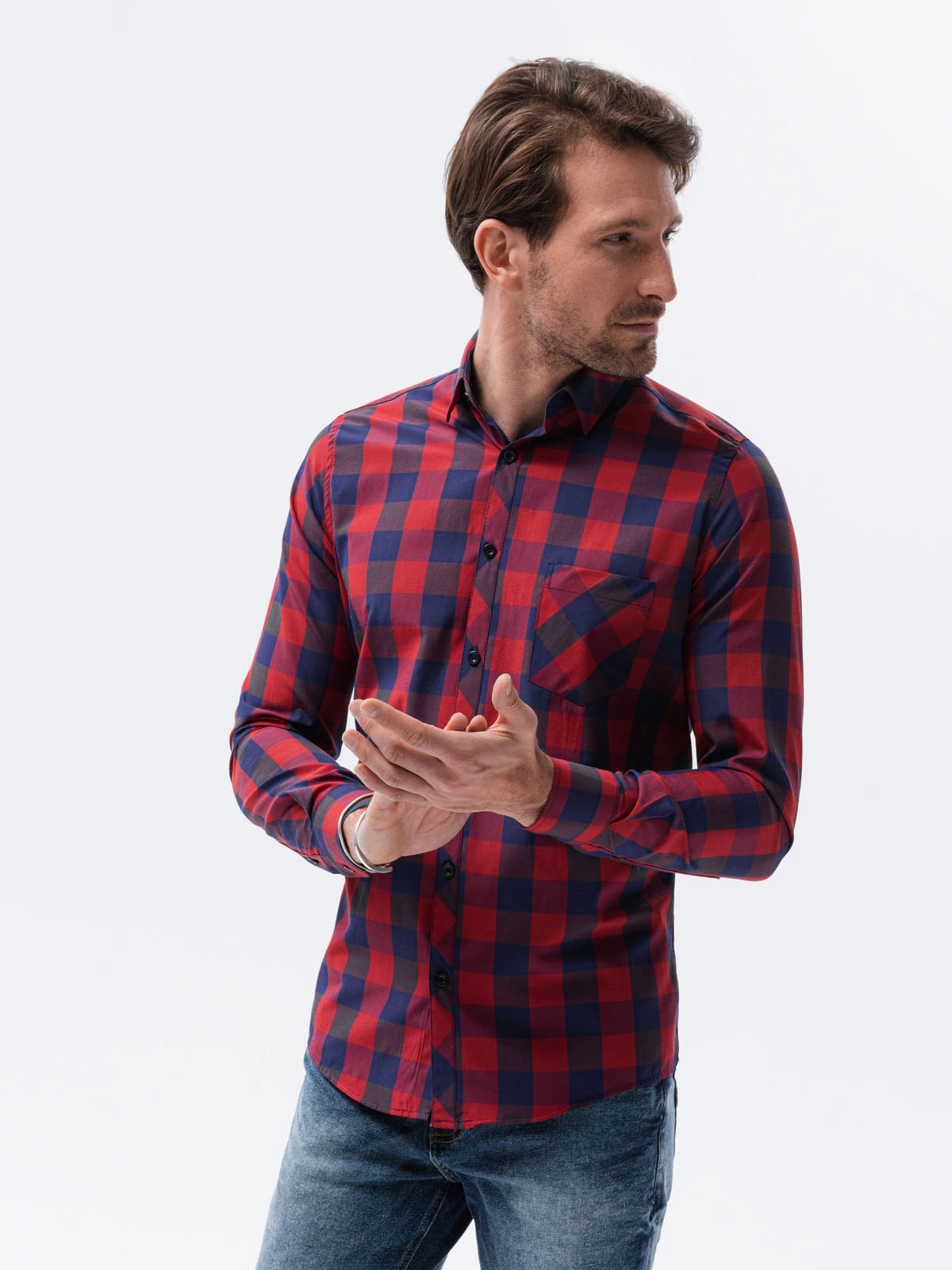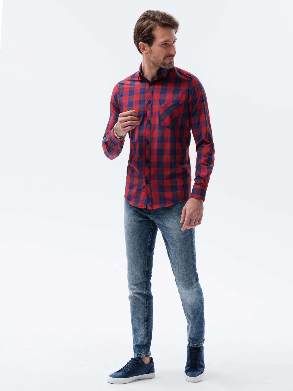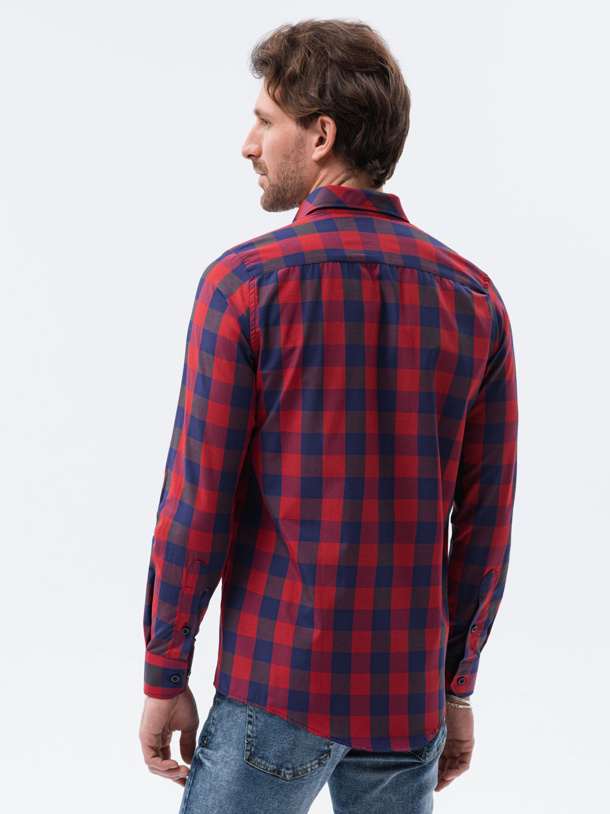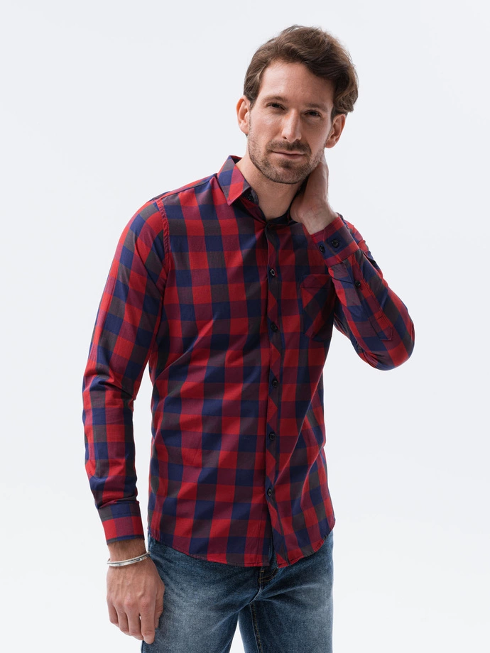- Koszula męska w kratę z długim rękawem - czerwono-granatowa K282