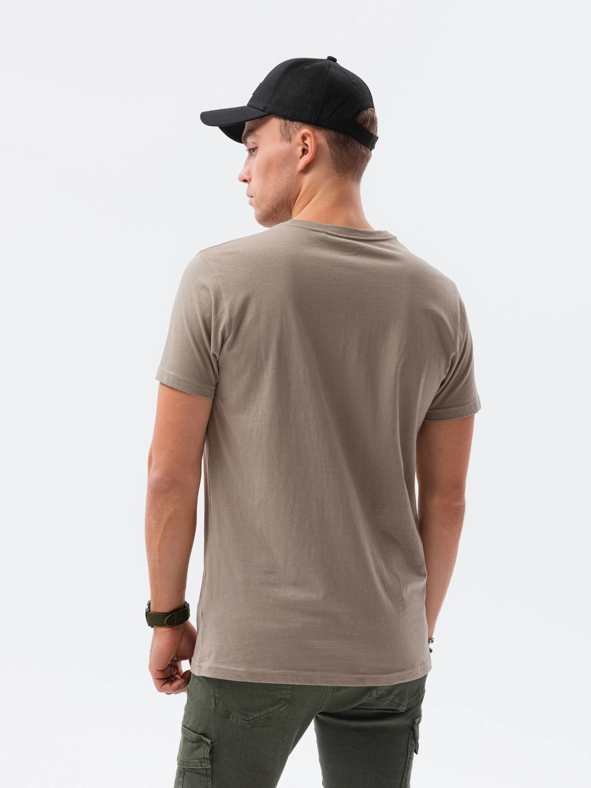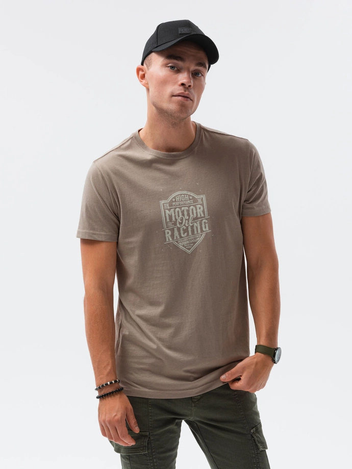 T-shirt męski z nadrukiem - brązowy V-25C S1434