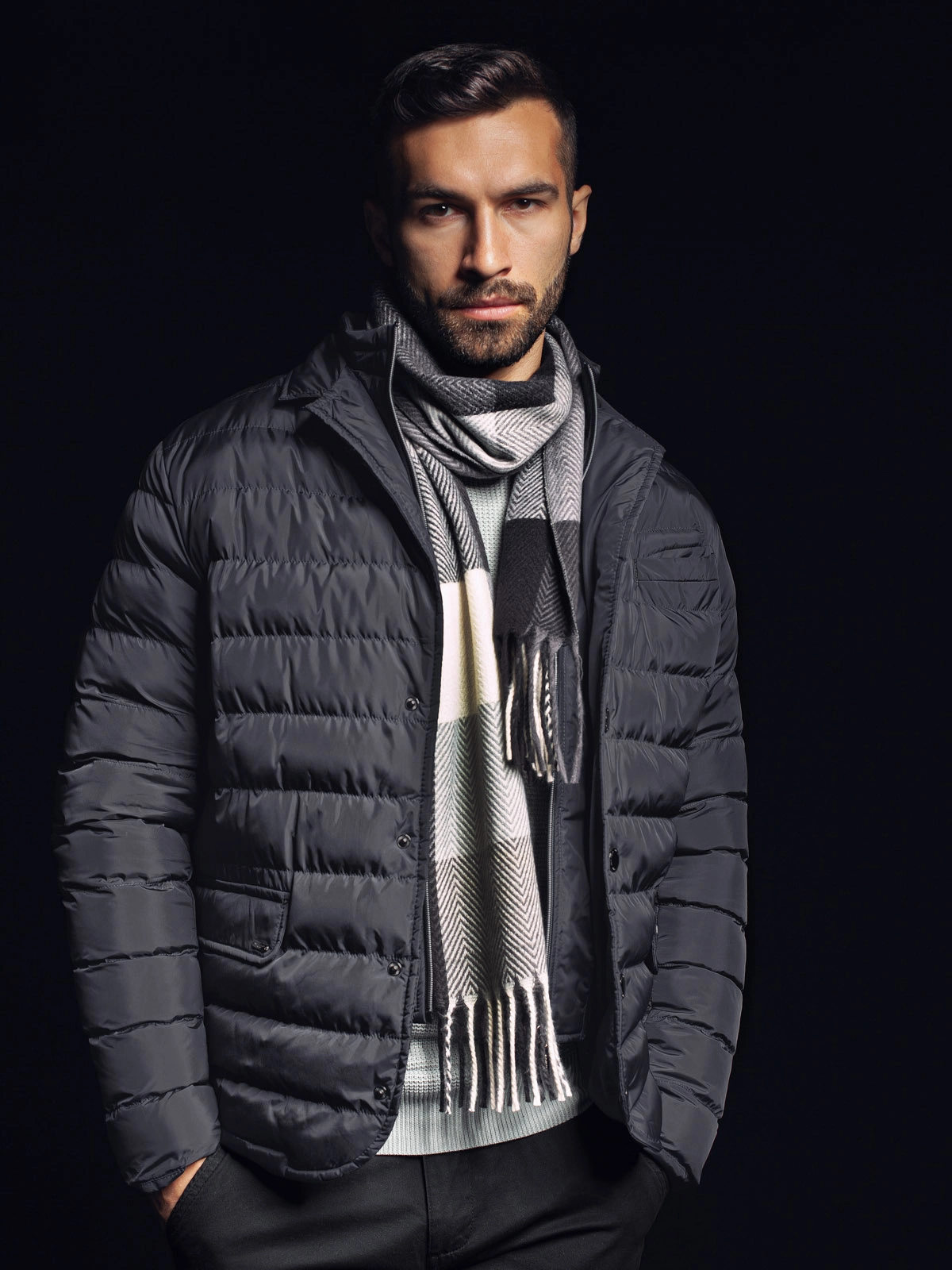 Szalik męski - grafitowy/biały V3 A851
