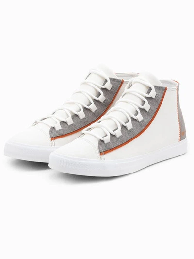 Męskie buty trampki z kontrastującymi elementami - białe V1 OM-FOTH-0140