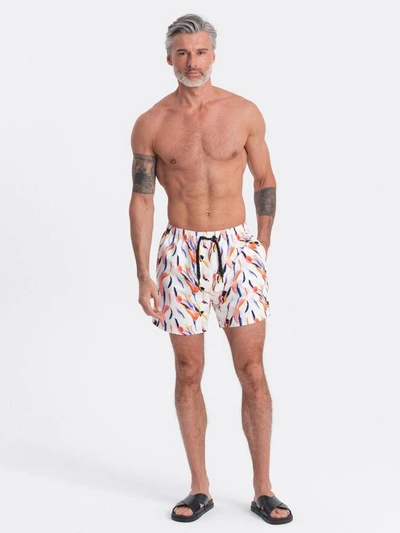 Szorty męskie kąpielówki w kolorowy print - białe V2 OM-SRBS-0140