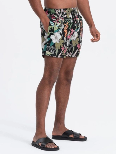 Szorty męskie kąpielówki w kwiaty - czarne V3 OM-SRBS-0140