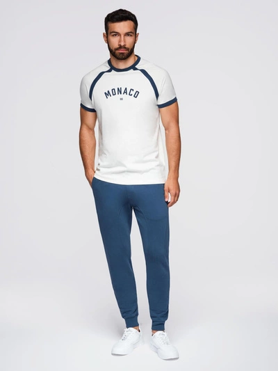 Spodnie męskie dresowe z nogawką bez ściągacza - ciemnoniebieskie V4 OM-PABS-0206