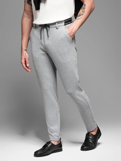 Dzianinowe spodnie męskie z gumką w pasie - jasnoszare V1 P1514