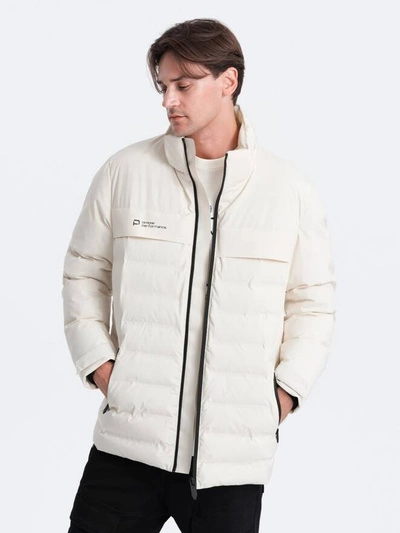 Zimowa kurtka męska z odpinanym kapturem - kremowa V2 OM-JAHP-0150