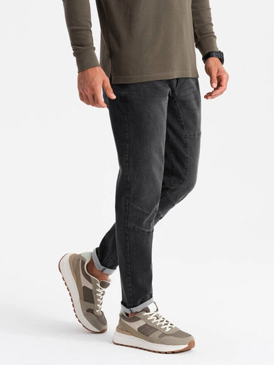 Spodnie męskie jeansowe TAPERED FIT z przeszyciami i podwiniętymi nogawkami – czarne V3 OM-PADP-0161