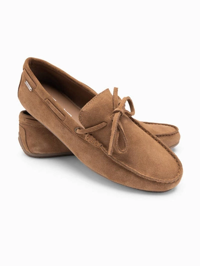 Buty mokasyny męskie skórzane z rzemykiem i podeszwą driver - beżowe V1 OM-FOCS-0150