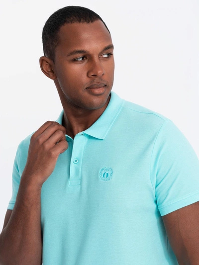 Męska koszulka polo jednokolorowa BASIC z dzianiny pique - miętowa V18 OM-POBS-0100